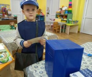 9 Октября Всемирный день почты! Малыши решили поздравить Почтальона Печкина! На занятии дети узнали: для чего нужен почтовый ящик, познакомились с назначением конверта и почтовой марки. Потом научились приклеивать почтовую марку на конверт. В конце занятия дети отправили свои письма Почтальону Печкин!