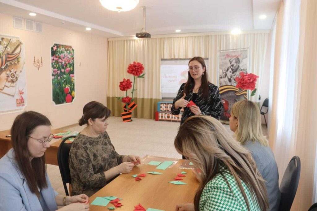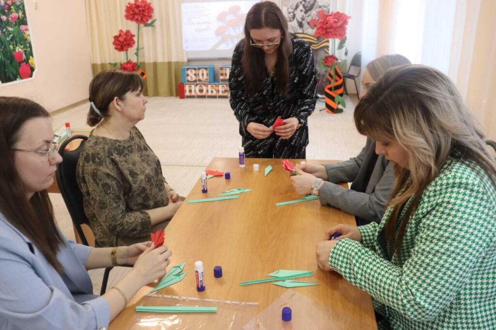 В рамках Педагогического марафона «Памяти Героев», проходящего с 1 апреля по 3 апреля на базе Тамбовского областного государственного автономного дошкольного образовательного учреждения «Центр развития ребенка – детский сад «Возрождение», выступила воспитатель МБДОУ детского сада «Колокольчик» Жердевского муниципального округа Белолипецкая Анна Сергеевна. Она представила презентацию и мастер-класс «Красная гвоздика-символ Победы» в технике «оригами». На данном мастер-классе педагоги познакомились с историей возникновения символа «Красная гвоздика». И в технике оригами изготовили цветок гвоздику. Красный цвет этого цветка ассоциируется с кровью, пролитой во время Великой Отечественной войны, и страстью патриотизма. Он напоминает о жертвенности и самоотверженности, проявленной советским народом в борьбе за свободу и победу.